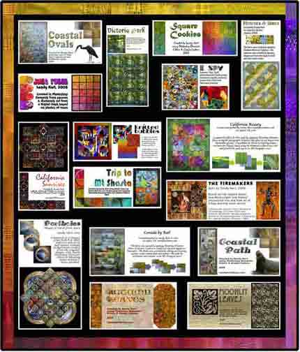 I created this quilt for book signings as a way of showing the varieties of quilts that could be made with"digital quilting" and to give people a quilt that they could feel. I arranged all of the digital labels that I had made for quilts I'd made in recent years on a black background and just printed the result on a sheet of paper-backed, treated fabric.